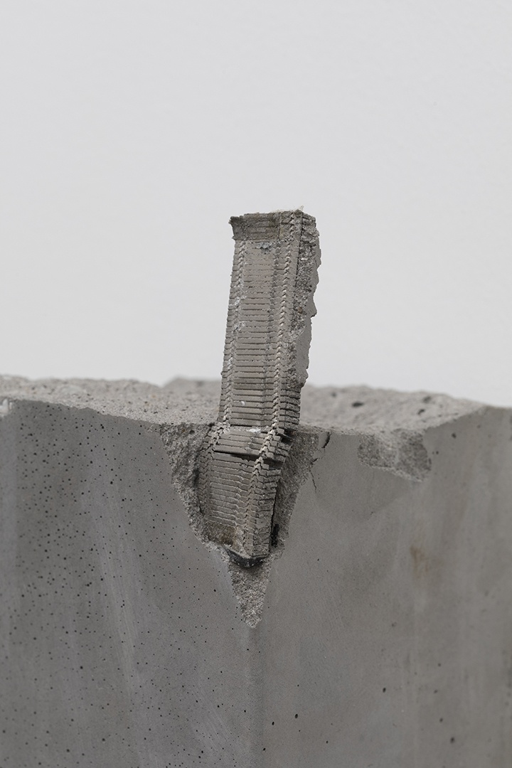“琥珀系列”延续了我近期项目"一个被恰当重塑的过往"和"(临时的)小器具"中对于人造物/技术物的关注。自然中的琥珀是一种天然树脂化石,其形态多种多样,内部经常可见气泡及古老昆虫、动物或植物碎屑。而当下的人造物和技术物,如同天然琥珀中的昆虫一样,从时间体量上来说或可被看作超越人类物种存在的永久遗存,一种人的“幽灵”。这个项目以被有意或无意固化在人造石(混凝土)中的人造物/技术物为目标,开展一场“幽灵狩猎”(Ghost hunting)。